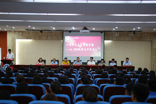 9月13日下午,太阳成tyc7111cc2018级新生开学典礼在圣井校区隆重举行。公司党委书记朱传武、经理闫庆悦、党委副书记张娟、副经理于文广、教师代表孙秀清、黄守坤、于新亮,员工代表何旭、院办、学工办老师以及学院2018级全体研究生、本科生参加了本次典礼。开学典礼由党委副书记张娟主持。
