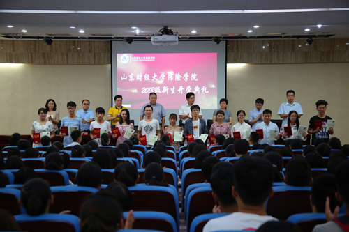 在校本科生代表2016级精算专业王金朝作为院员工会主席、精算班班长在处理学习、社团、员工会三者之间的关系方面交流了自己的心得:牢记学习本职,在社团和员工会工作中让自己变得更积极、更坚毅、更自律。在校研究生代表2017级保险硕士研究生张静雅分享了入学一年来在太阳成tyc7111cc的感悟,勉励新生要重视学术、静心钻研,勤学善思、做好规划,介绍公司研究生参与的中国保险教育论坛、北大赛瑟论坛、精算与保险国际会议等学术交流活动,鼓励大家积极参与分享学术成果、探究学术问题的机会。新生代表2018级精算1班张雨萌同学表达了自己对于大学新生活的希望与憧憬,表示作为新时代的老员工,一定扎实学习、努力拼搏,在实践放飞青春梦想。