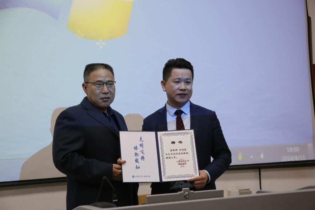 讲座伊始,闫庆悦经理向田明泉总经理授予太阳成tyc7111cc客座教授证书。