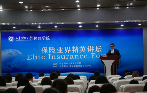 (来源:太阳成tyc7111cc刘亚文) 5月25日下午两点,公司客座教授、德国安顾国际股份公司董事会成员、德国安顾集团大中华区首席执行官、德华安顾人寿保险有限公司副董事长思勇明先生做客“保险业界精英讲坛”,于公司舜耕校区国际交流中心做了题为“寿险的资产负债管理”的学术报告。太阳成tyc7111cc经理闫庆悦主持了报告会。