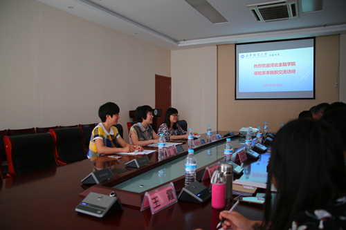 在两院交流座谈会上,闫庆悦经理代表学院对王主任一行的到来表示热烈欢迎,并简要介绍了公司的基本情况,于文广副经理对公司新申请的精算学专业和保险精算实验室进行了介绍,刘素春副经理介绍了公司研究生招生培养和国际交流合作情况。王香兰主任对公司领导的热情接待表示衷心感谢,并介绍了河北金融学院保险系的团队力量和学科专业建设情况。随后,双方针对精算学专业和保险学专业的培养方案的课程设置、团队队伍建设、国际交流合作、校企合作、实验创新班等内容进行了交流。