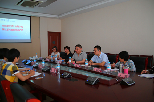 5月16日上午,河北金融学院保险系主任王香兰教授一行三人到访公司考察并进行交流座谈,公司闫庆悦经理、刘素春副经理、于文广副经理以及教研室主任等参加了座谈。