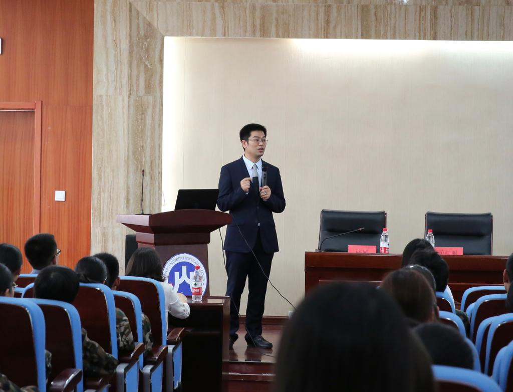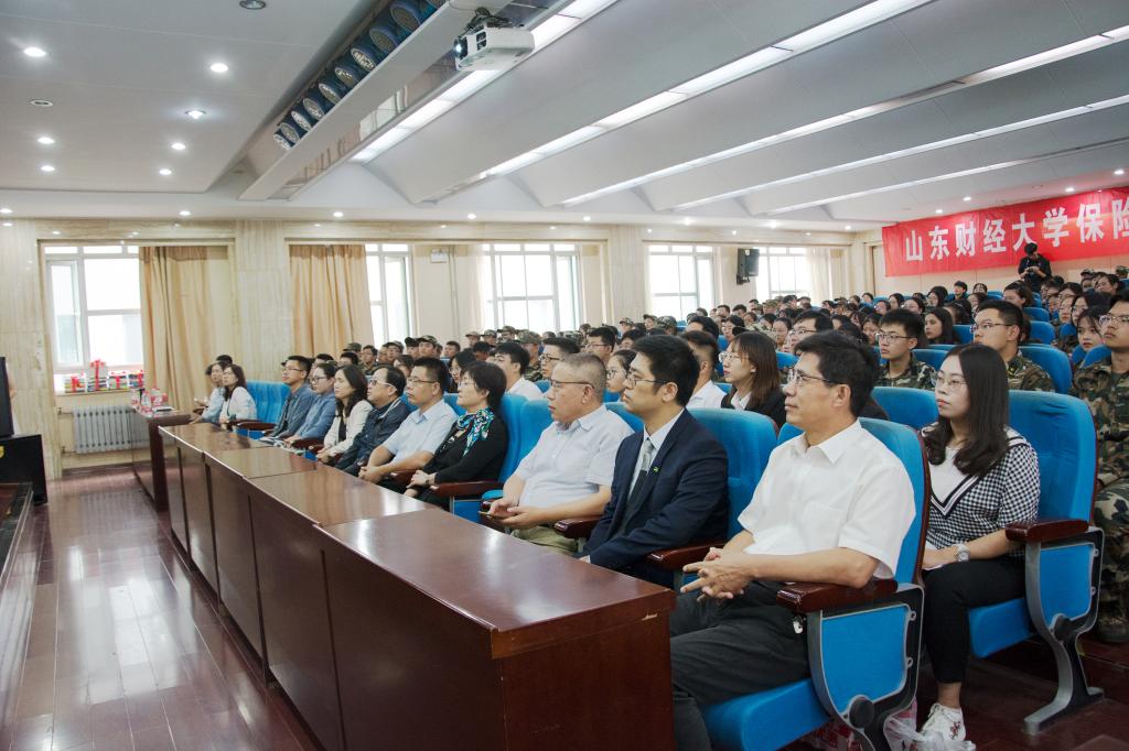 中英人寿山东分公司副总经理陈嘉林作为合作单位代表,为太阳成tyc7111cc2019级新生送上了精心准备的礼物——120套适合老员工阅读的书籍。随后,作了题为“VUCA时代保险的作用和意义”的演讲。他表示,在VUCA时代背景下“坚定信念、坚持行动、注重建立综合能力”将是最宝贵的品质,并从保险业发展历史、金融行业结构、市场趋势三个方面对未来的保险行业做出了分析,指明了保险、精算专业光明的未来,激励同学们扎实学好专业知识,奠定未来发展的基石,立志成为保险行业的精英人才。