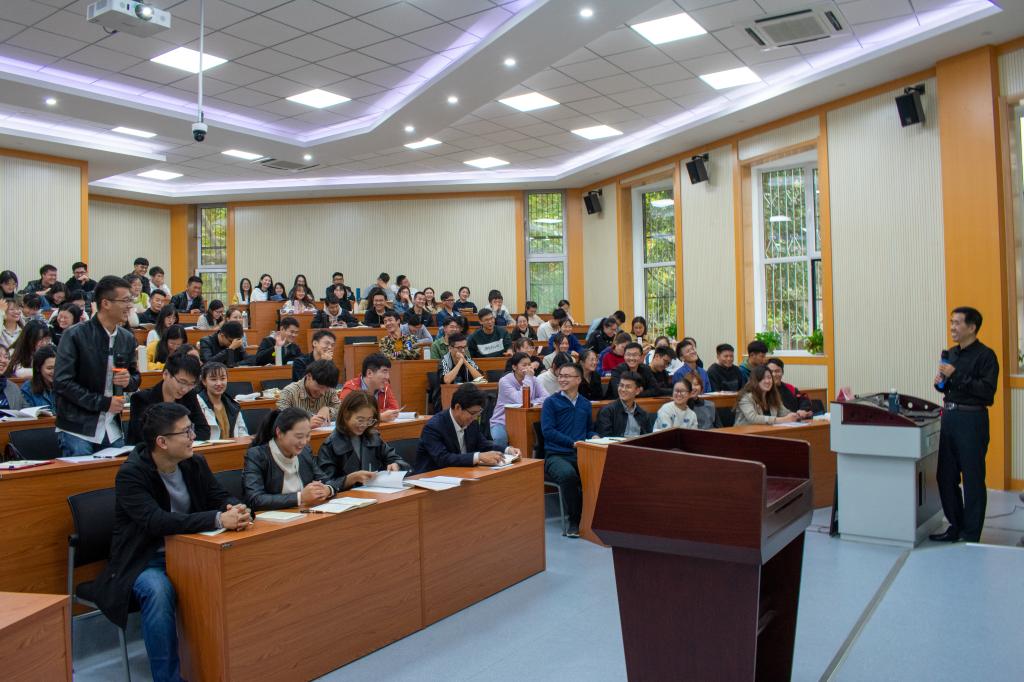 在互动环节,姜波结合自身实际和感悟,对同学们的提问做了情真意切、耐心细致地回答,勉励广大青年员工学会学习、重视友谊、拥有健康,用思想走路、用能力与人品生存,使在场师生深感触动、深受鼓舞。