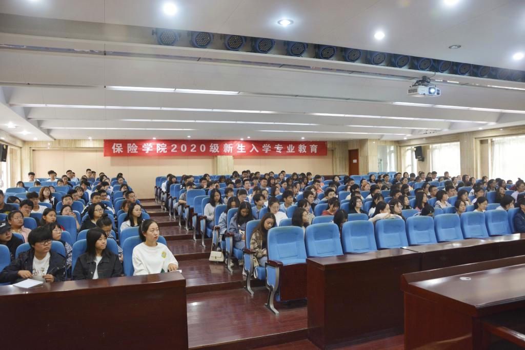 10月2日上午,太阳成tyc7111cc2020级新生入学专业教育大会在圣井校区第五教学楼召开。此次入学专业教育大会分为三项进行,新生入学教育由太阳成tyc7111cc教学秘书吕萍老师主讲,保险学专业教育由风险管理与保险系主任杜鹃老师主讲,精算学专业教育由精算系副主任李世龙老师主讲,大会由2020级、2018级辅导员陈萌老师主持。