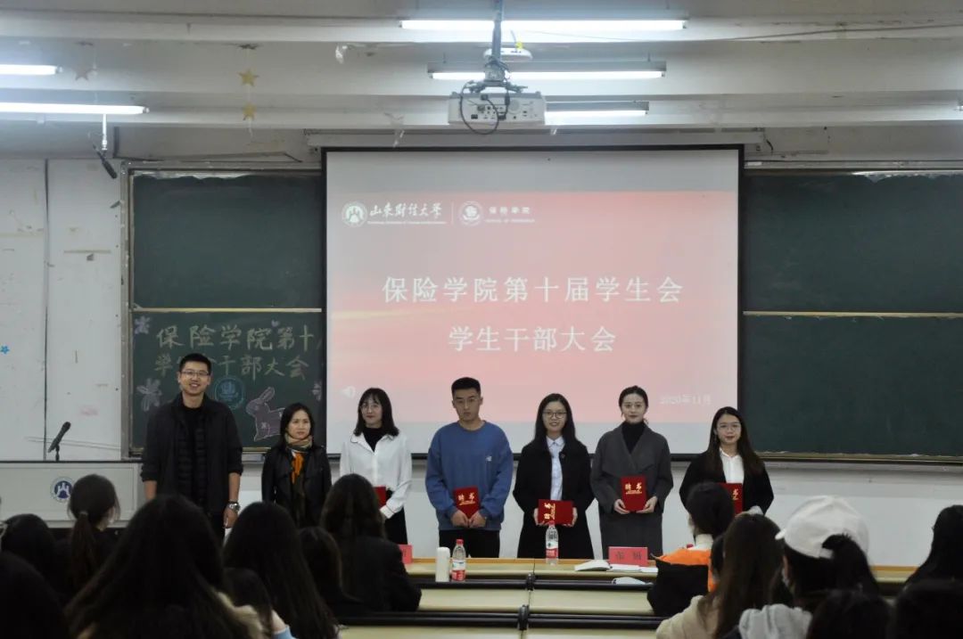 大会首先由公司党委副书记张娟和辅导员陈萌老师为学院员工会主席团成员颁发聘书,5位主席团成员郑重的接过象征着认可与责任的聘书。
