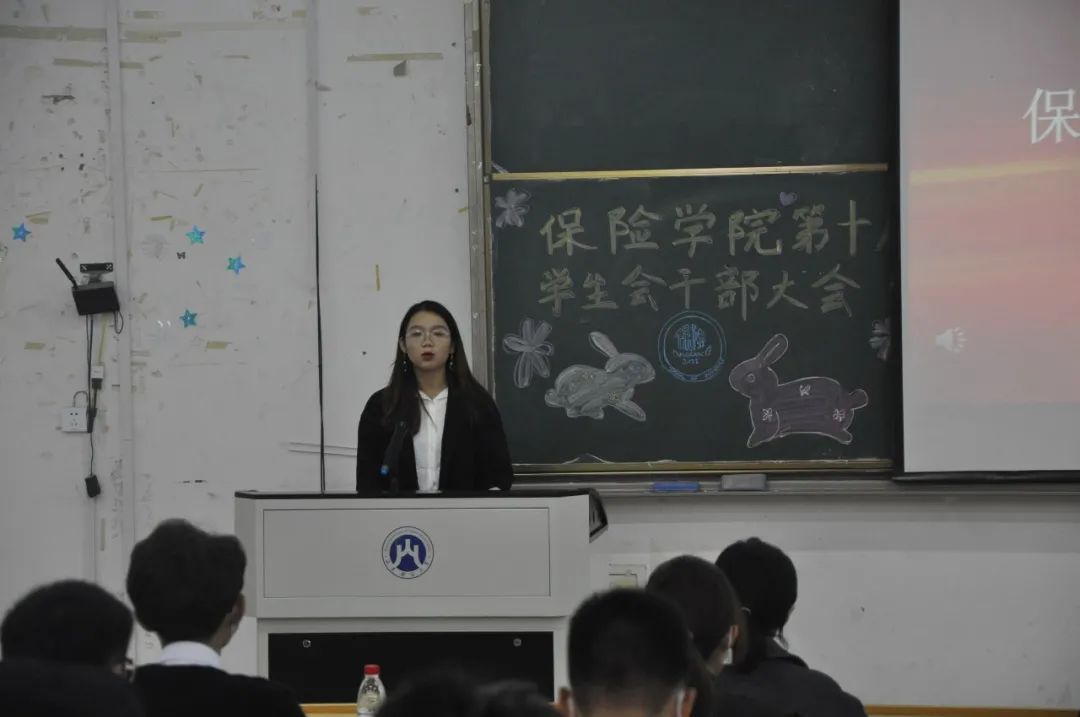 员工会部长代表、新媒体中心部长王熙泽分享了自己在员工会工作的所想、所感、所得,首先表达了对学院领导、老师衷心的感谢和对学弟学妹们的热烈欢迎,总结了自己一路走来的收获和感悟,提出“找准定位、转正态度,做好角色转变”的真诚建议,通过“热心、恒心、责任心”三个词激励大家乘风破浪,砥砺前行,不负保院,不负自己。