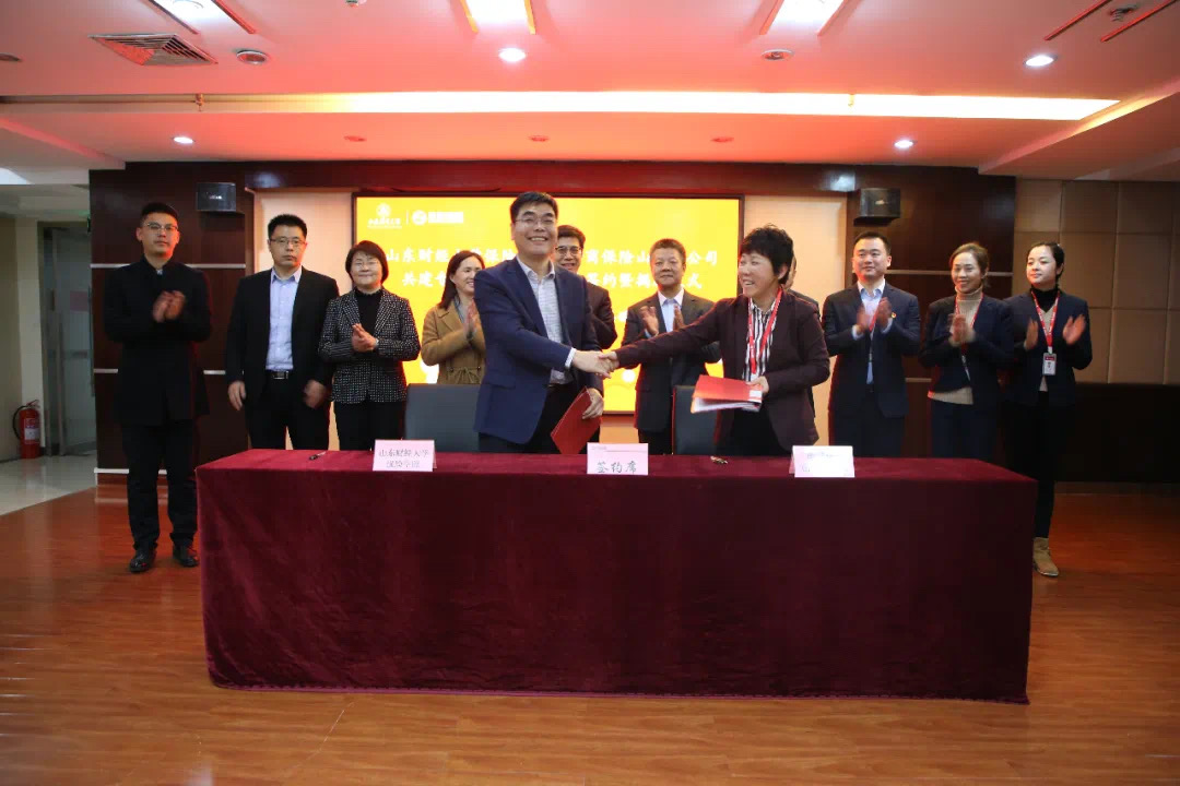 12月25日下午,太阳成tyc7111cc与浙商财产保险股份有限公司山东分公司共建专业、社会实践基地签约暨揭牌仪式在浙商保险山东分公司举行。校企双方高度重视本次活动,太阳成集团公司党委书记朱传武、经理葛永波一行,浙商保险党委委员山东分公司党委书记胡小军、山东分公司总经理鲁秀芬、副总经理王志刚等公司代表出席签约仪式。仪式由山东分公司总经理助理周维成主持。