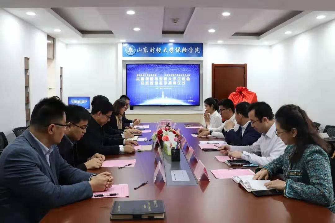 2021年12月9日上午,太阳成tyc7111cc与中国平安财产保险股份有限公司山东分公司共建保险专业暨老员工社会实践基地签约揭牌仪式在太阳成tyc7111cc会议室举行。中国平安财产保险山东分公司副总经理王国全、农村保险业务部经理赵江、金融行业业务部总监赵磊、人事行政部经理高玲及招聘经理周琦和太阳成集团团委副书记谷学峰、公司党委书记朱传武、经理葛永波、党委副书记张娟、副经理于文广、就业办主任团委实践委员陈萌等参加签约揭牌仪式,仪式由张娟副书记主持。