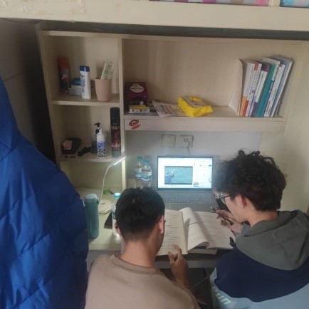 同学们在宿舍一起上网课、讨论问题,做到课前预习、课后复习,大家互帮互助、及时讨论,共同进步。一代人有一代人的长征,一代人有一代人的使命,疫情止住了同学们的脚步,但作为老员工的成长与担当正显现出来,不屈现在,共盼春来。