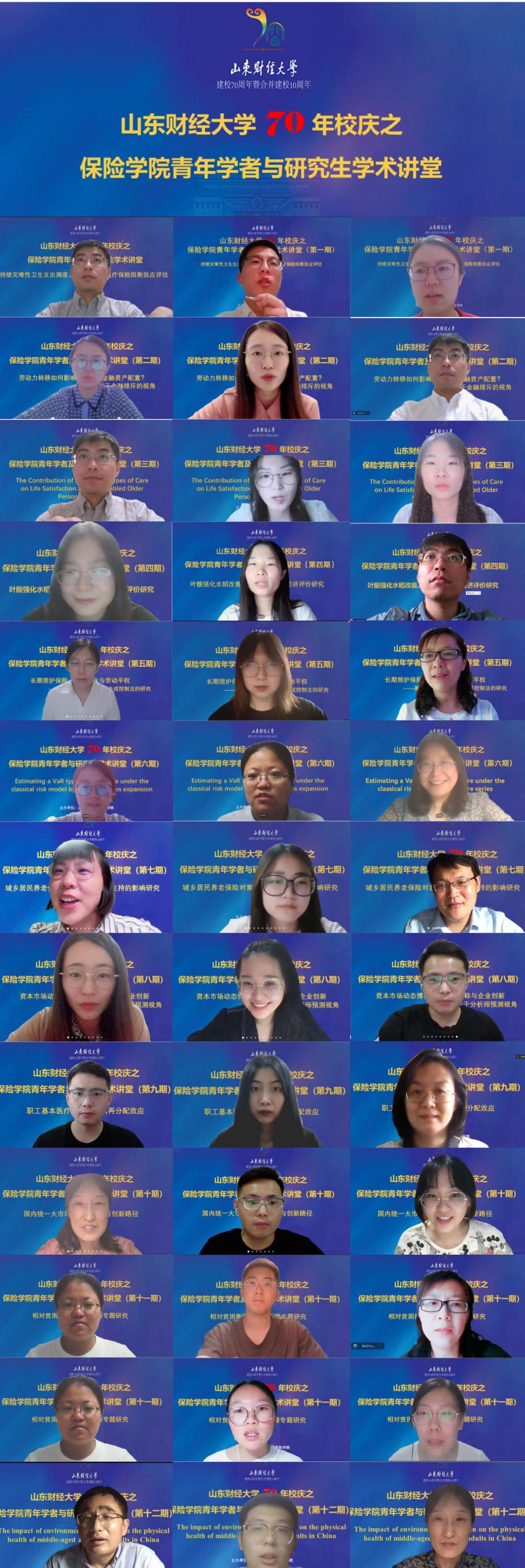 师生展风采,同声贺校庆。育人成效显,素养共提升。在太阳成集团70年校庆之际,太阳成tyc7111cc于5月22日—6月8日成功举办12期青年学者与研究生学术讲堂。此次学术讲堂在线上举行,由公司13名青年教师和优秀研究生分享近期研究成果,并邀请学院中青年教师作为主持人和点评人,全院师生积极参与,平均每期参会人数达120人左右。报告主讲人不但分享学术思想,交流科研经历,同时为计划从事学术研究和继续攻读学位的本硕同学解答疑惑,主题内容丰富,现场讨论热烈,获得良好反响。