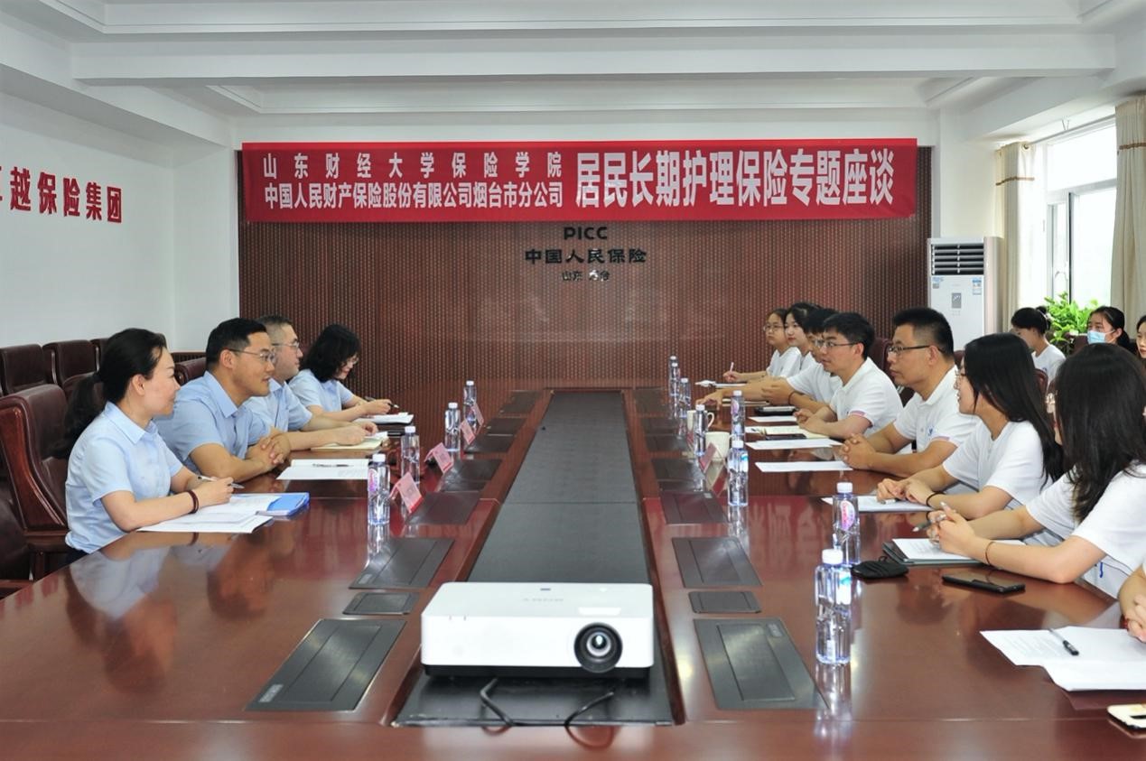 7月21日下午,调研团队跟随学院老师领导一同来到中国人民财产保险股份有限公司烟台市分公司就居民长期护理保险存在的问题和对策展开座谈。陈同富总经理、刘振先副总经理、社保业务部由晓伟经理和个人非车险部林科羽经理的细致讲解下,团队了解到烟台市居民长护在2018年长岛试点后一直未开展在内陆地区的推广,主要原因是资金严重不足,缺少筹资途径,未形成统一照护体系等问题。晓伟经理对长期护理保险目前的经办情况进行了详细介绍。