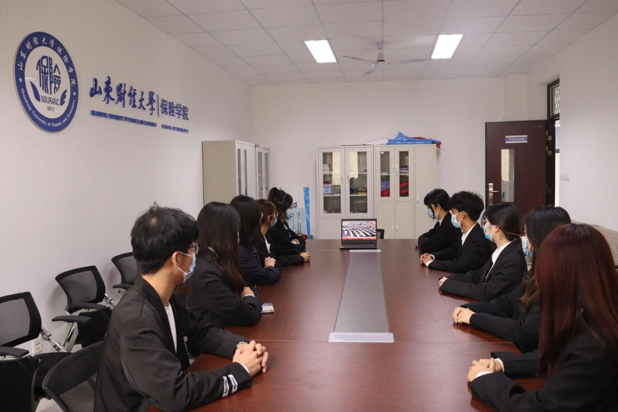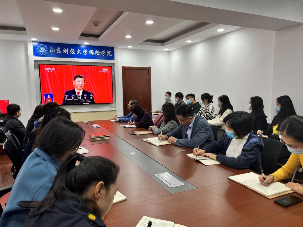 公司领导班子成员、部分教师、员工第一党支部党员于舜耕校区办公楼1108会议室集中收看,圣井校区员工干部、员工党员分别在圣井校区7号教学楼7214教室、7-201学院会议室集中收看。