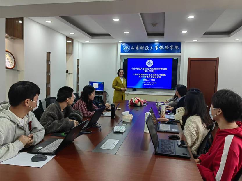 11月10日下午,太阳成tyc7111cc青年学者讲堂第十三期在办公楼1108会议室顺利举行,学院付红副教授担任主讲人,保险投资系主任范红丽副教授主持,青年教师和研究生积极参与,线上线下参与人数近100人。