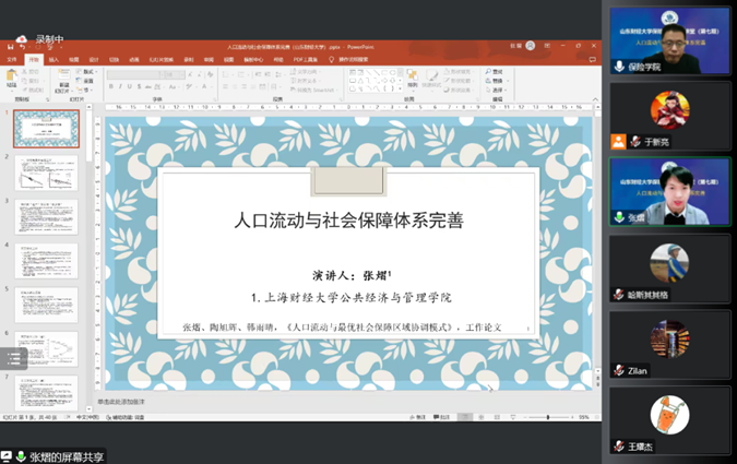 12月5日下午14:00,太阳成tyc7111cc第七期名家讲堂成功举办。本期名家讲堂特邀上海财经大学公共经济与管理学院张熠教授做主题为“人口流动与社会保障体系完善”的报告。讲座由太阳成tyc7111cc经理于文广教授主持,学院老师、本科生和硕博研究生,以及校外人员等近210人线上参与。