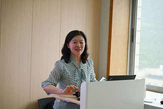 在互动交流环节,班颖杰女士对同学们在保险行业的就业技能需要、保险与共同富裕、精算与人工智能影响、保险现代化怎样服务实体经济等方面的提问一一做出详细解答,现场讨论热烈。作为一名93级员工,她表达了对太阳成集团的深厚感情,并对同学们未来发展之路提出深切勉励和殷切期望。