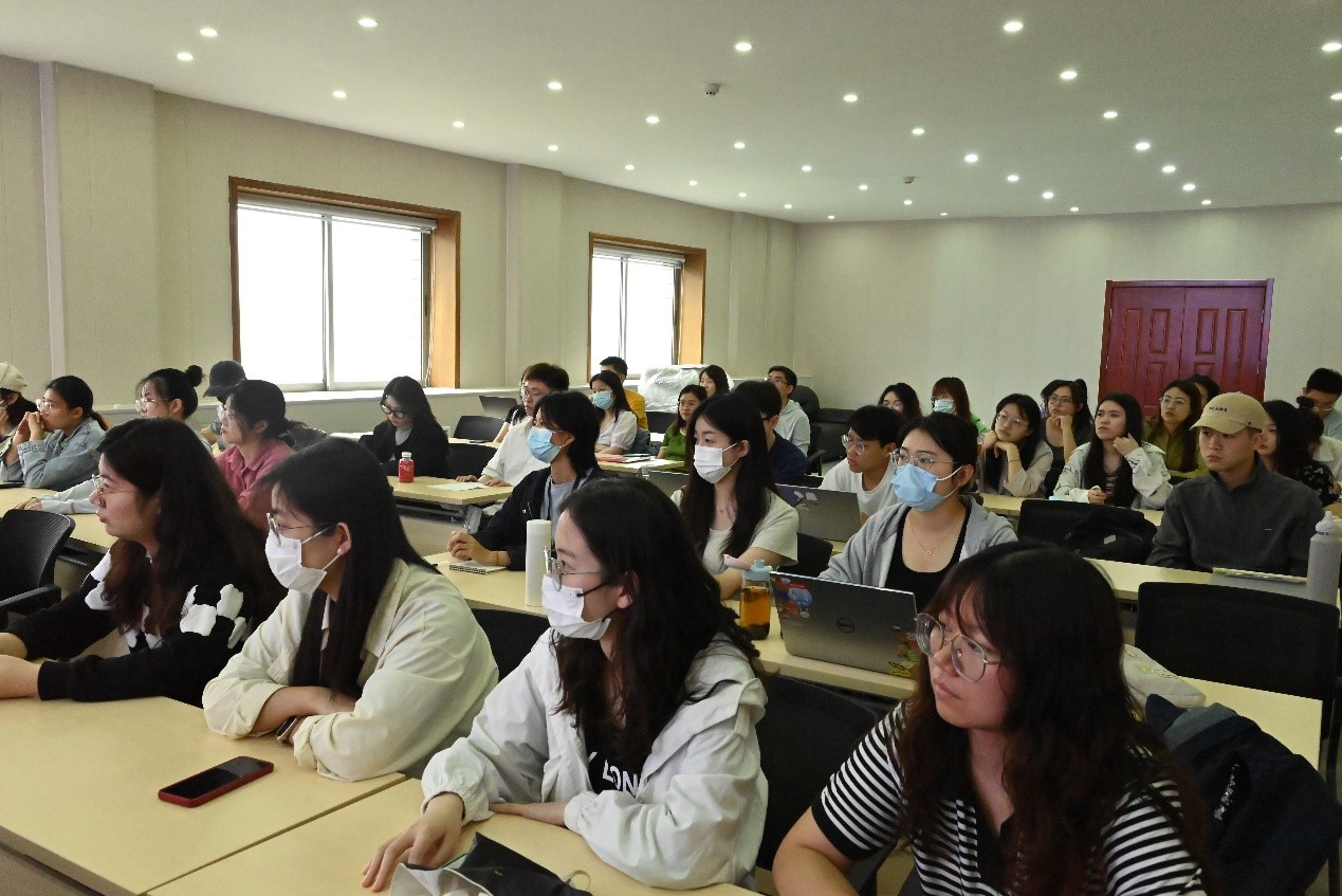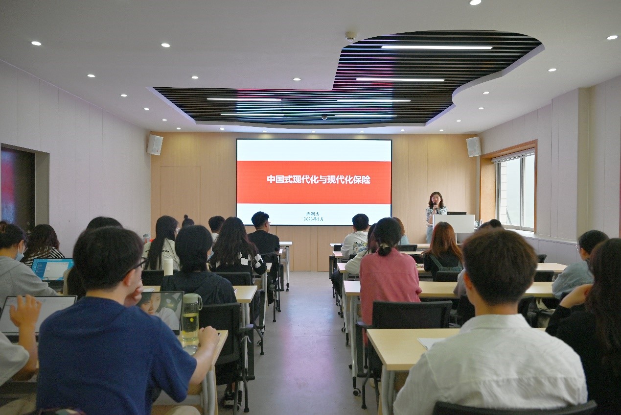 5月27日14点,太阳成tyc7111cc第十期名家讲堂在舜耕校区办公楼15楼太阳成tyc7111cc报告厅成功举办。本期名家讲堂特邀人保再保险公司财务管理部负责人班颖杰做报告,主题为“中国式现代化与现代化保险”。报告由太阳成tyc7111cc副经理于新亮主持,公司党委书记张娟和60余名硕士研究生参会。
