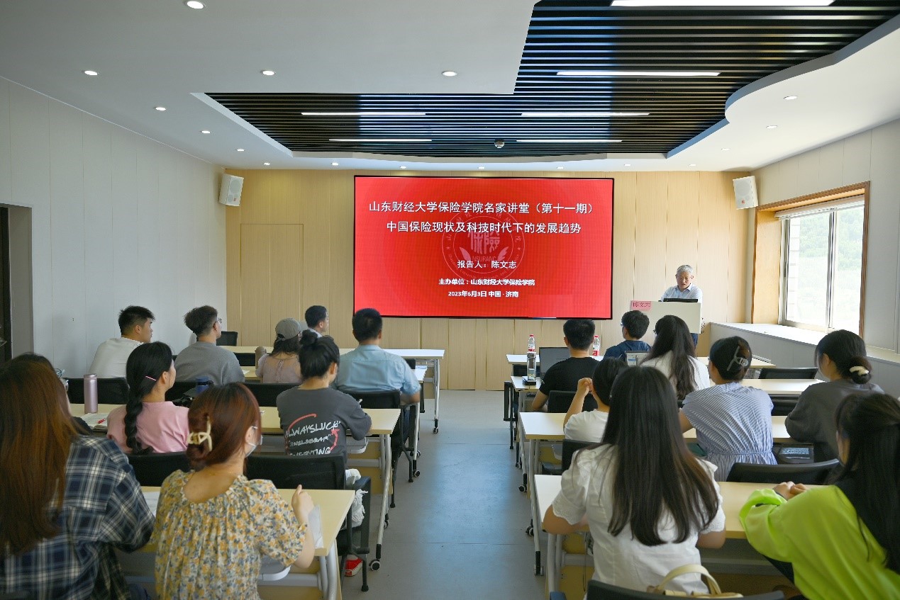 6月3日10点,太阳成tyc7111cc第十一期名家讲堂在太阳成集团舜耕校区办公楼15楼太阳成tyc7111cc报告厅成功举办。本期名家讲堂特邀上海最会保网络科技有限公司创始人兼CEO陈文志先生作报告,主题为“中国保险现状及科技时代下的发展趋势”。会议由太阳成tyc7111cc经理于文广教授主持,最会保保险经纪有限公司总经理刘毅、山东分公司总经理柳国磊和山东宝易销企业管理咨询有限公司总经理郑向军,以及近50名硕士研究生参会。