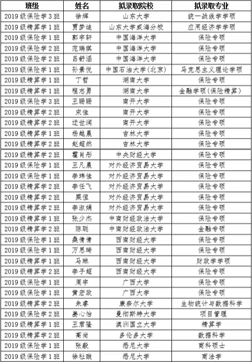 值得一提的是,公司第11届员工会主席、2019级精算学2班员工宋佳被南开大学保险专硕录取,这也是公司连续第三届员工会主席考入南开大学;23505宿舍的2019级保险学1班员工刘晋利、高连子、赵芯田、王竞卓全部考取研究生。
