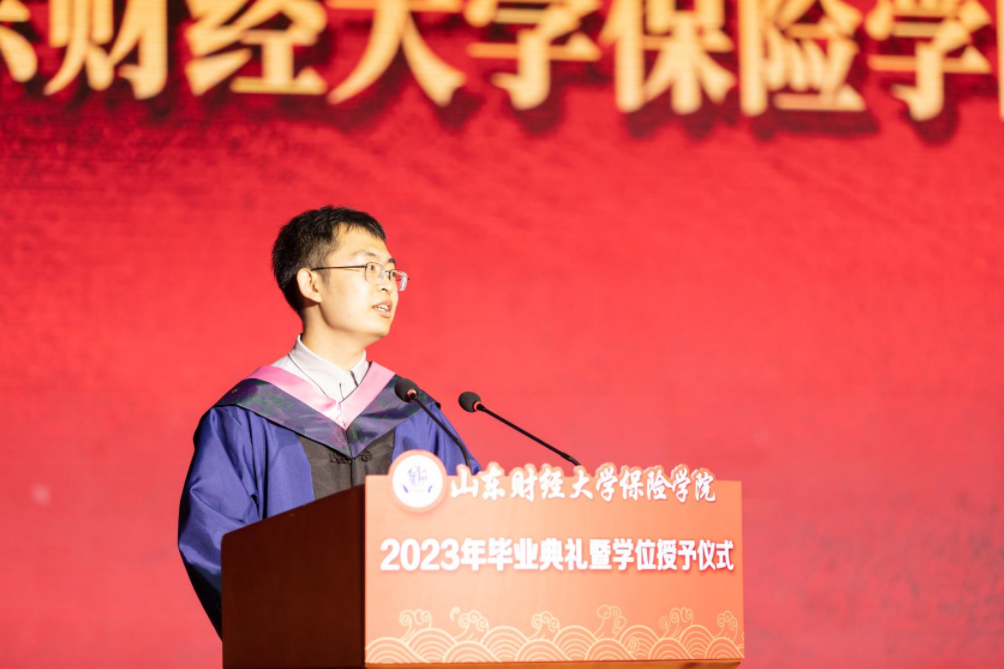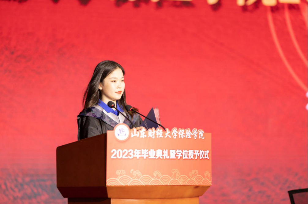 研究生毕业生代表乔智、本科生毕业生代表宋佳依次发言。他们深情表达了对母校、学院、恩师、同窗和家长朋友的崇高敬意与真挚感谢,分享了自己大学求员工涯的感想体会和温馨时光,难忘在保院耕耘收获的记忆,未来愿与师友家人一同前行并号召全体毕业生以传承与革新的精神迎接新的挑战,引发现场毕业生的强烈共鸣。