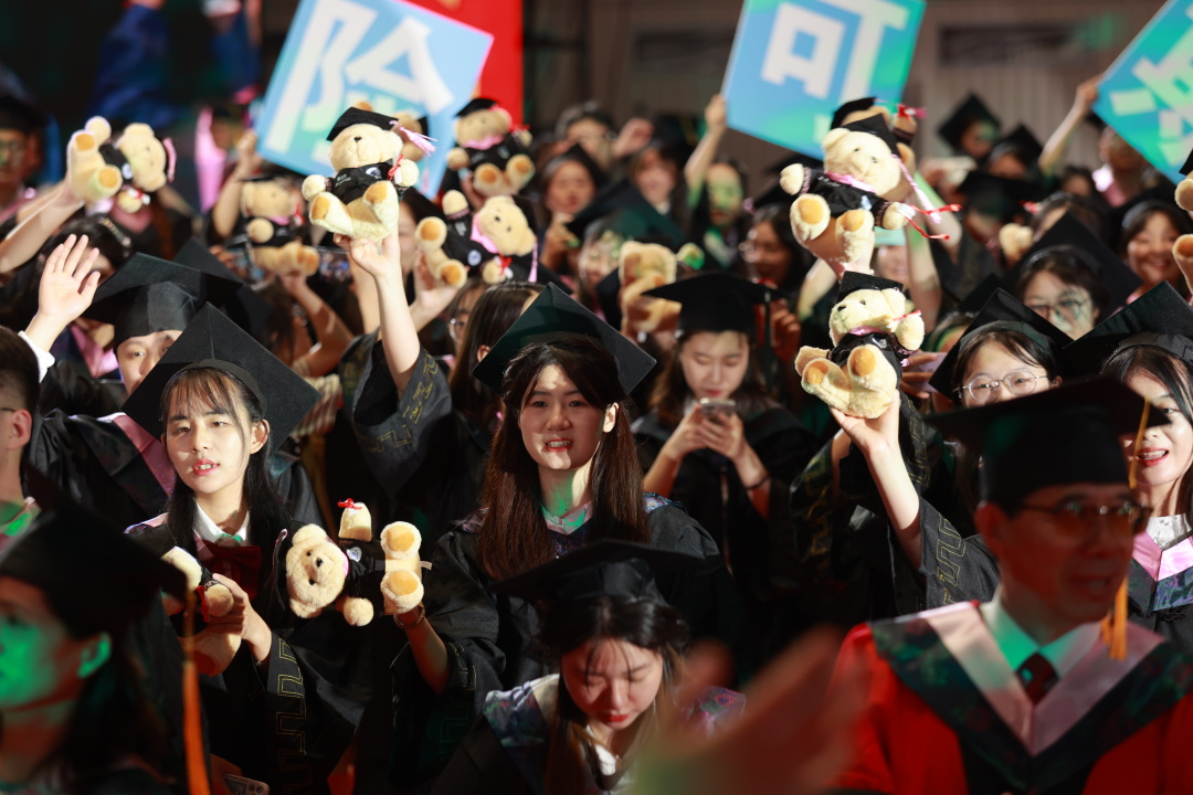典礼现场,校歌《梦想花开》和太阳成tyc7111cc毕业主题MV循环播放,一帧帧青春活力的画面重现了太阳成tyc7111cc学子珍贵而美好的大学时光,让大家沉浸在温馨感人的记忆长河中。