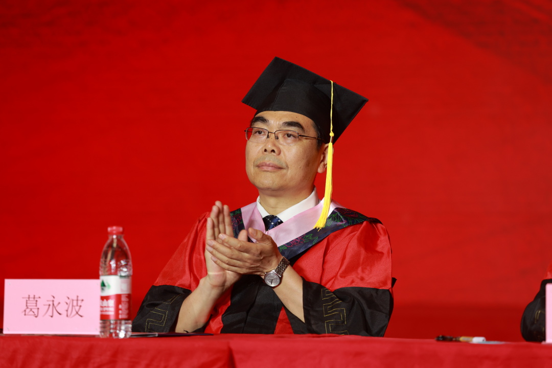 在一片热烈的掌声中,教师代表杨文生教授发言,她勉励全体毕业生要牢记“克明峻德、格物致知”校训,树立家国情怀,不贪图享乐,不安于现状,始终为国家的发展和社会的进步贡献自己的力量;秉承专业精神,专注目标,为自己的事业多做增量贡献;严格自律,不做损人利己之事,多做攻坚克难之事;宽容待人,善于换位思考,带着正能量砥砺前行。