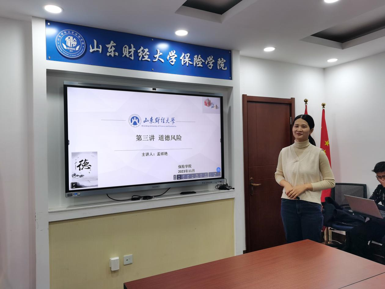 随后,范红丽介绍了本次比赛的顺序、规则以及打分标准。八位青年教师依次就道德风险、森林保险、人寿与健康保险、保险投资原理、保险合同主体、统计学习在精算科学中的应用、最大诚信原则和保险会计的前提和基础等多个专业核心课程的主要章节和知识点进行教学展示。参赛青年教师们声情并茂,挥洒自如,以新颖独特的课堂设计,条理清晰的教学表达,自然合理的课堂思政进行沉稳从容的讲授。良好的课堂教学效果,展示出公司青年教师较高的职业素养和专业水平,赢得了评委和观摩教师们的一致好评。