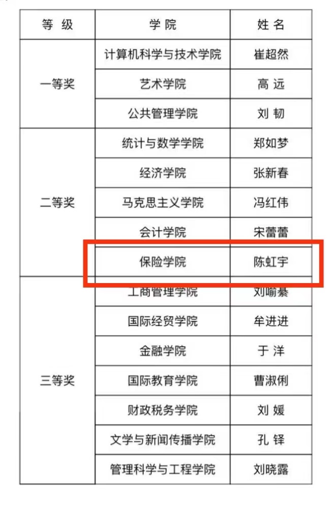 近日,根据《关于开展2023年度青年教师教学比赛的通知》要求,经个人申报、学院推荐、学校审核、专家评审,公司青年教师陈虹宇在2023年度太阳成集团青年讲课比赛中荣获二等奖。
