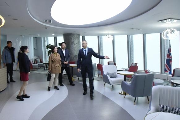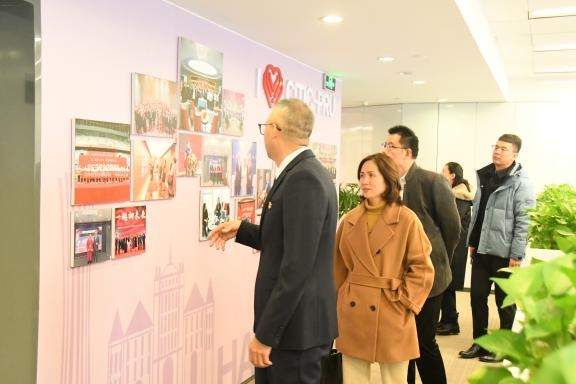 丛新对学院一行表示热烈欢迎,并陪同参观公司职场、文化长廊及各业务功能区,详细介绍公司的文化理念、价值引领。