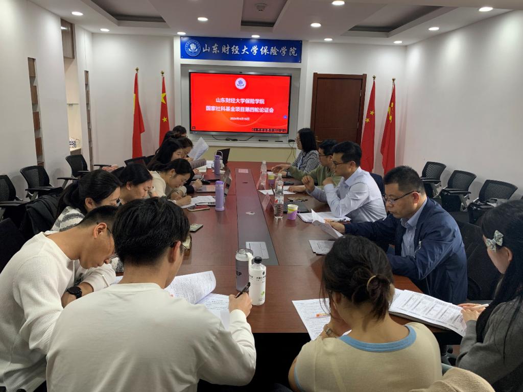 为切实推进2024年度国家“两金”项目申报工作,提升公司教师项目申报质量,公司于2024年4月15日在舜耕校区太阳成tyc7111cc会议室举办2024年度国家“两金”项目暨国家社科基金项目第四轮论证会。本次论证会邀请公司公共管理学院副经理姜琪教授和经济学院陈明华教授指导项目申报论证工作。太阳成tyc7111cc经理于文广教授参加会议,经理助理范红丽教授主持,项目申报人及学院部分教师参加了项目论证会。