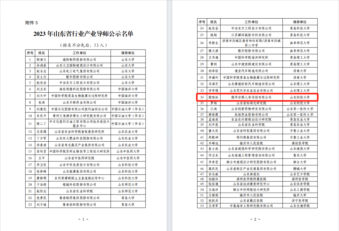 近日,根据《关于开展2023年导师指导能力提升有关项目申报工作的通知》《关于开展2023年山东省研究生优质公司产品资源项目申报工作的通知》《关于做好2023年研究生公司产品改革研究项目立项申报工作的通知》要求,山东省教育厅公布了2023年山东省行业产业导师名单,公司客座教授殷晓松先生成功入选。