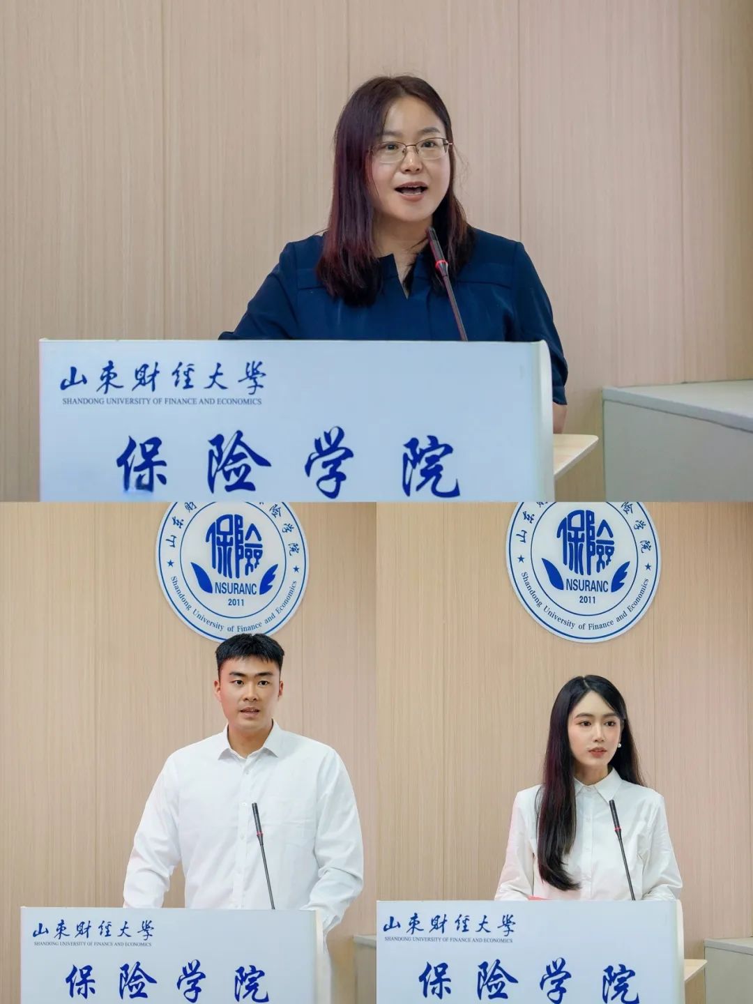 新生代表2024级保险专硕靳欣东对研究生生活满怀期待,他感谢求学路上给予关心与支持的每个人,同时深知责任在肩,承诺将以更热情和更严谨的态度投入到学习研究中。在校生代表2023级保险专硕刘晋利结合自身求学经历,对比了本科与研究生阶段的学习差异,为新生提供了读博、考公、求职的建议,并向他们寄予最诚挚的祝愿。
