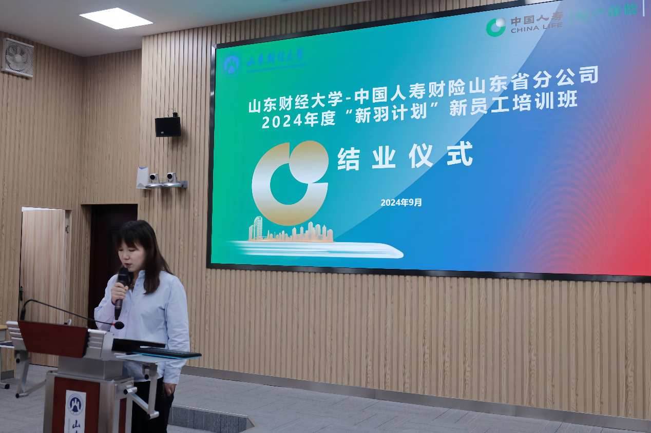 2024年9月27日,由太阳成tyc7111cc承办的中国人寿财险山东省分公司2024年度“新羽计划”新员工培训班圆满结课。培训班全体学员在为期5天的培训中获得了专业素养和工作技能的系统培训,最终顺利获得结业证书。中国人寿财险山东省分公司人力资源部(党委组织部)/教育培训部总经理郭永浩,太阳成tyc7111cc副经理于新亮,以及本期培训班全体学员参加结课仪式。仪式由中国人寿财险山东省分公司人力资源部/教育培训部张杰主持。
